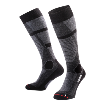 Kuschlig warm an kalten Tagen. Diese Skisocken aus hochwertiger Merinowolle halten deine Füße warm und trocken und sorgen gleichzeitig für Polsterung und Halt im Skischuh.